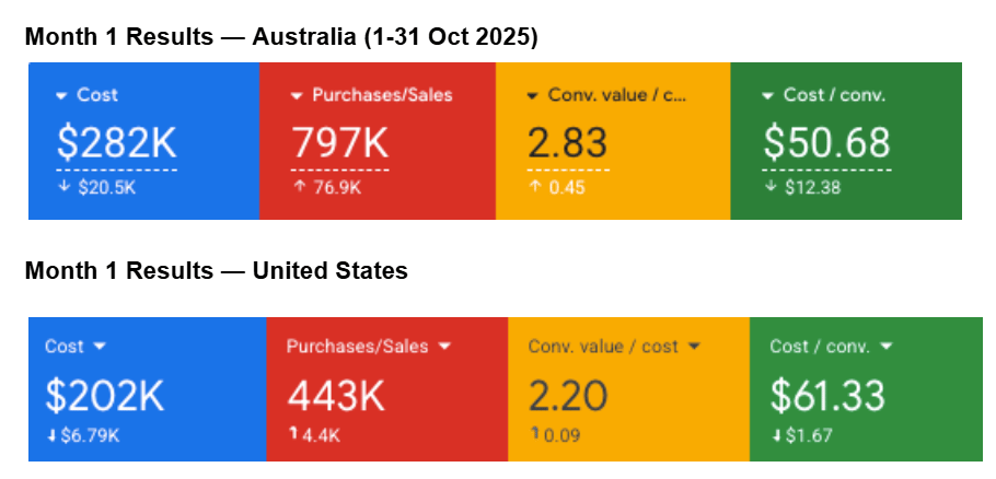 Right after we onboarded the brand, we excluded unprofitable SKUs and cut high-cost, low-return search terms.